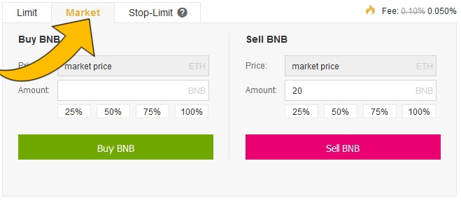? Informations : Actuellement, vous devez mettre le nombre de coins de l'autre paire que vous souhaitez vendre. Si vous souhaitez acheter un nombre précis d'ETH, le montant à mettre est le prix de l'Ethereum divisé par le prix de l'altcoin. Par exemple, je veux acheter 2 ETH à 300$, et le prix du BNB est de 16$. Je veux donc vendre 300/16 = 18.75 BNB.