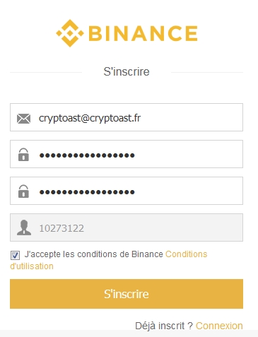 Vous pouvez passer cette partie si vous avez déjà un compte Binance. Sinon, cliquez ici pour créer votre compte maintenant !