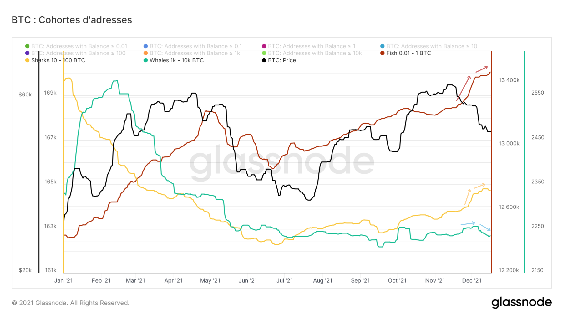 Bien que ce graphique ne nous éclaire pas sur le comportement direct des entités du marché, il constitue un proxy pertinent pour constater que les petits porteurs ont accumulé de nombreux BTC durant la récente correction.