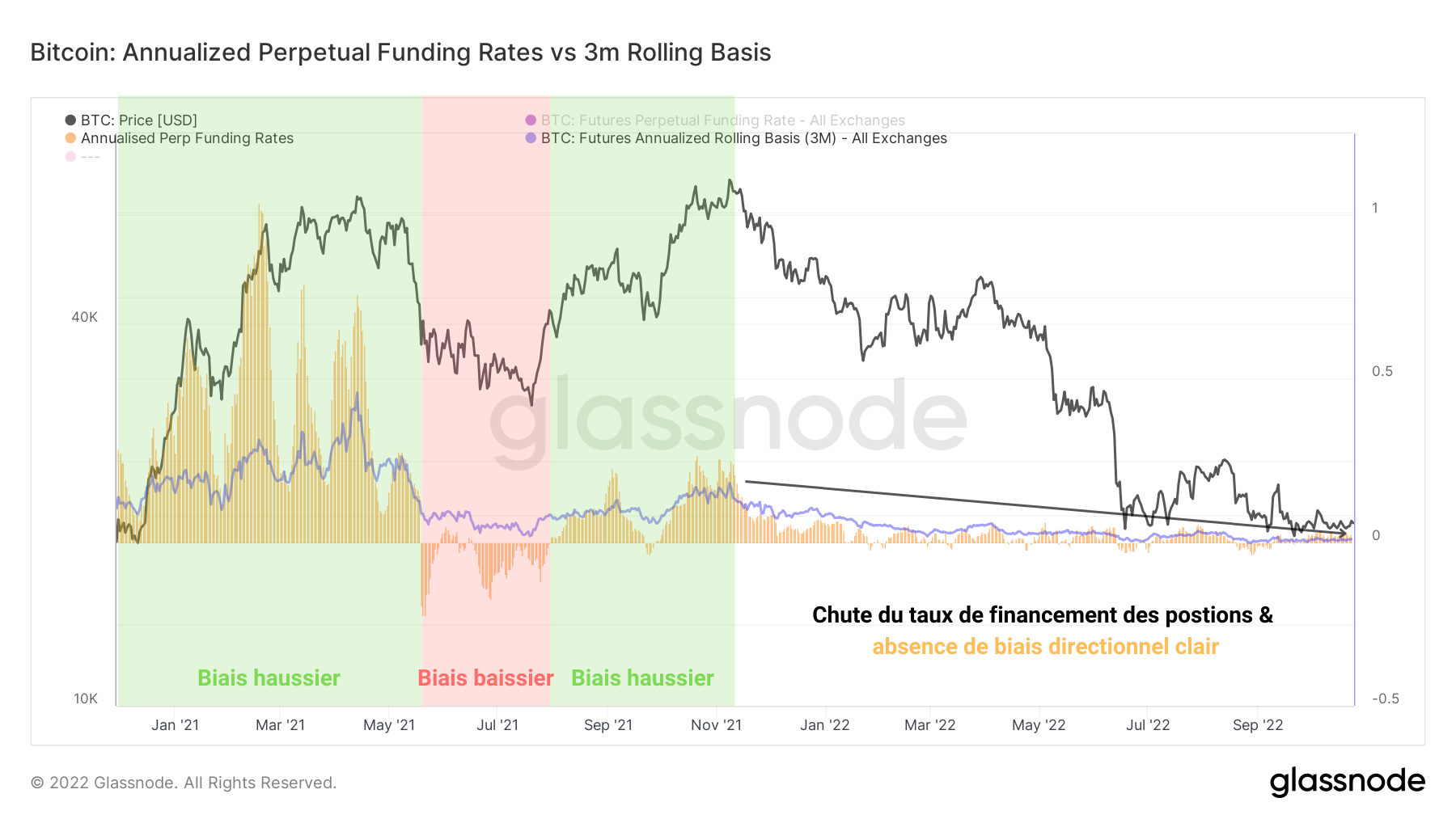 En effet, en opposition aux forts biais haussiers ou baissiers enregistrés en 2020-21, la chute du taux de financement en cours depuis novembre 2021 ne fournit aucun indice digne d'être approfondi.