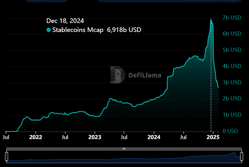 Avec le graphique ci-dessus, nous pouvons observer qu'Arbitrum a atteint son record (ATH) en terme de market cap de stablecoins le 18 décembre. Depuis cette date, cette capitalisation a fortement chuté, s'établissant à environ 2,8 milliards de dollars à l'heure où nous rédigeons ces lignes.