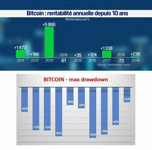 - Sa volatilité hors norme, représentée ici par le max drawdown annuel depuis 10 ans.