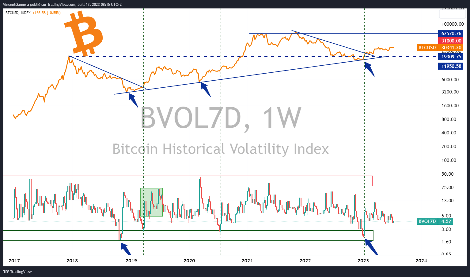 Depuis 3 semaines, la proximité de la résistance majeure à 31 000 dollars est le facteur technique dominant sur le marché crypto. Rappelons que cet obstacle chartiste représente le dernier argument valable des permabear, ceux qui vivent dans la plus grande frustration de ne pas avoir vu leur cible des 12 000 dollars atteinte dans le sillage dans la faillite de FTX à l’automne 2022.