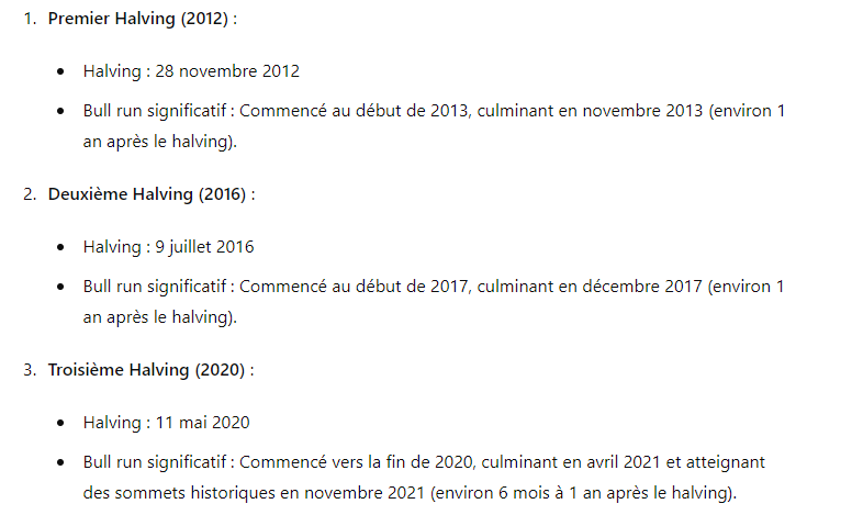 Il a toujours fallu plusieurs semaines à mois après le halving pour obtenir le déclenchement du bull run