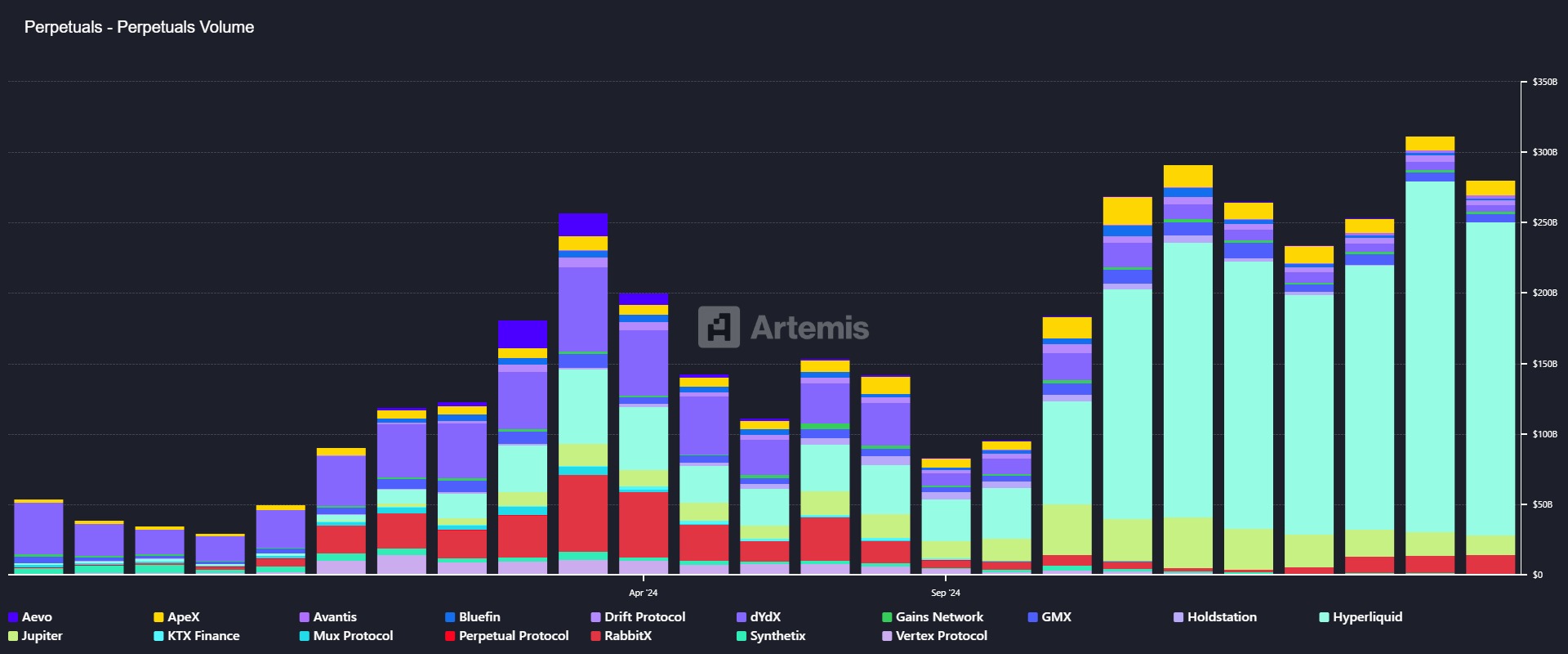 Mais Hyperliquid ce n'est pas qu'un airdrop. C'est également l'exchange décentralisé (DEX) de contrats perpétuels (perps) le plus utilisé dans le paysage crypto :