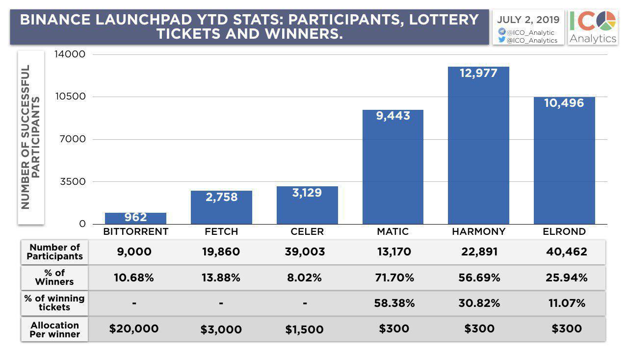 On remarquera globalement que depuis l'instauration du système de loterie, le nombre de participants n'a cessé d'augmenter. Ceci rend le pourcentage de gagnants de plus en plus faibles. Seuls 11% des tickets étaient gagnants lors de la dernière IEO. Le succès reste présent, le jeton ERD s’échangeant à neuf fois son prix d'IEO.
