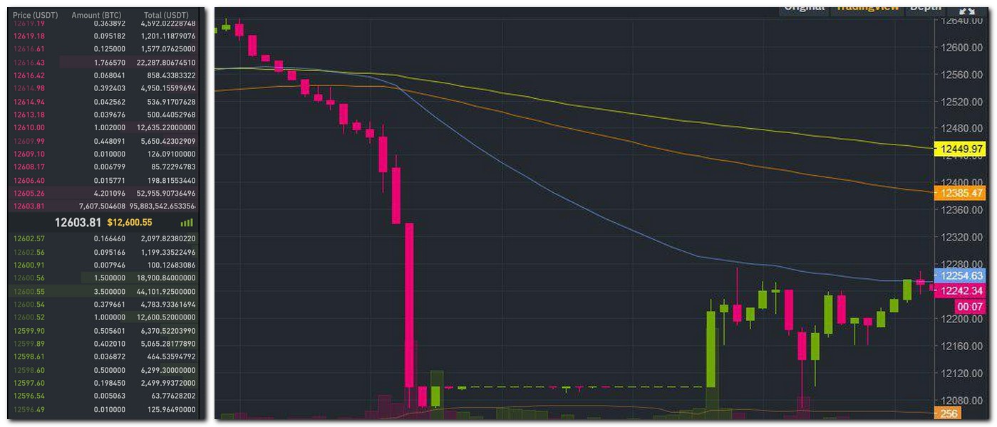 Cependant cette semaine, 5 ans après, c'est un ordre d'une toute autre ampleur qui a eu lieu. Sur Binance c'est plus de 7600 BTC qui sont apparus dans le carnet d'ordre, représentant quasiment 100 millions de dollars. Le mastodonte aura été dévoré en 23 minutes seulement à 12100$ !