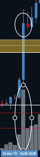 Sur ce graph, nous voyons bien la zone de résistance en jaune, ainsi que le cours qui vient s'abattre dessus par deux fois (les 7 & 16 mars).