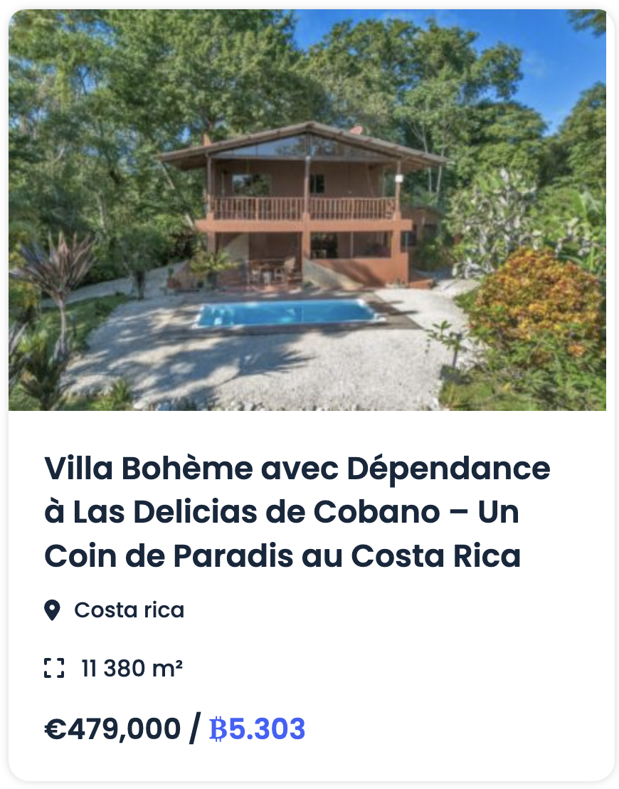 Villa à vendre au Costa Rica via le site de mise en relation de Bitcoinimmo