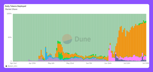 Peu de temps avant le lancement du token PUMP - la crypto du launchpad concurrent Pump.fun -, LetsBonk.fun a pris la tête du nombre de tokens déployés par jour de manière inattendue, propulsant ainsi ses revenus et in fine les buybacks/burns de tokens vers des sommets jamais atteints.