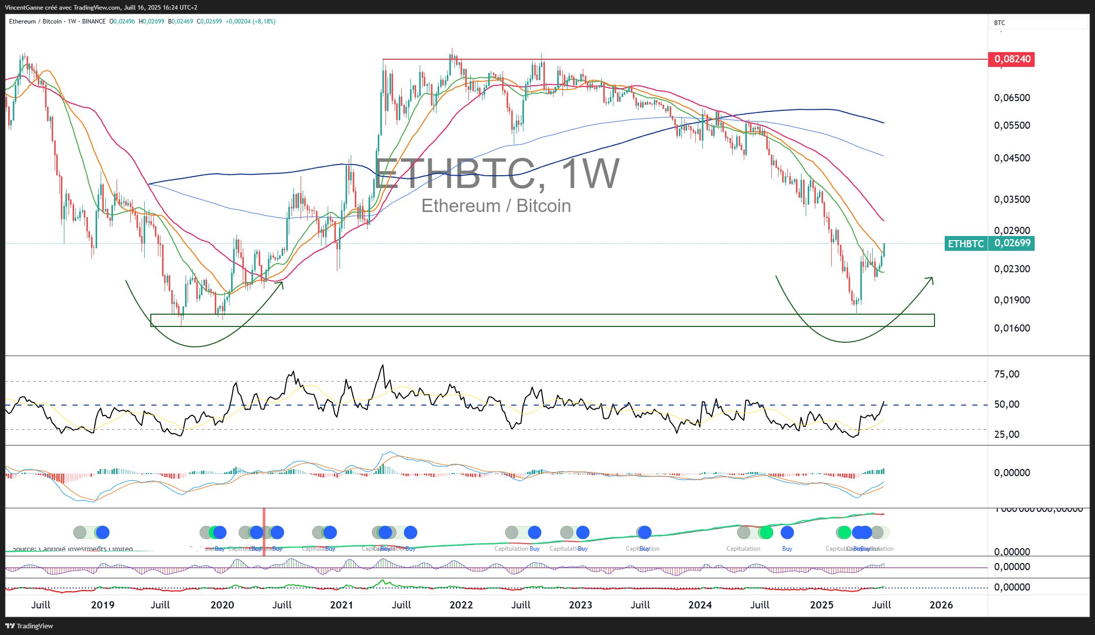 Le ratio ETH/BTC a validé un retournement haussier majeur, c’est le signal d’une surperformance de l’Ether face au BTC et ce jusqu’à la fin du cycle en cours