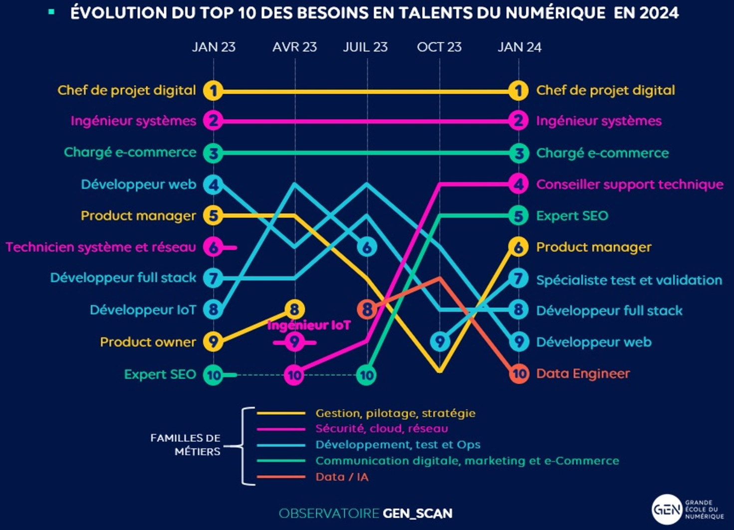Évolution du top 10 des besoins en talents du numérique depuis janvier 2023