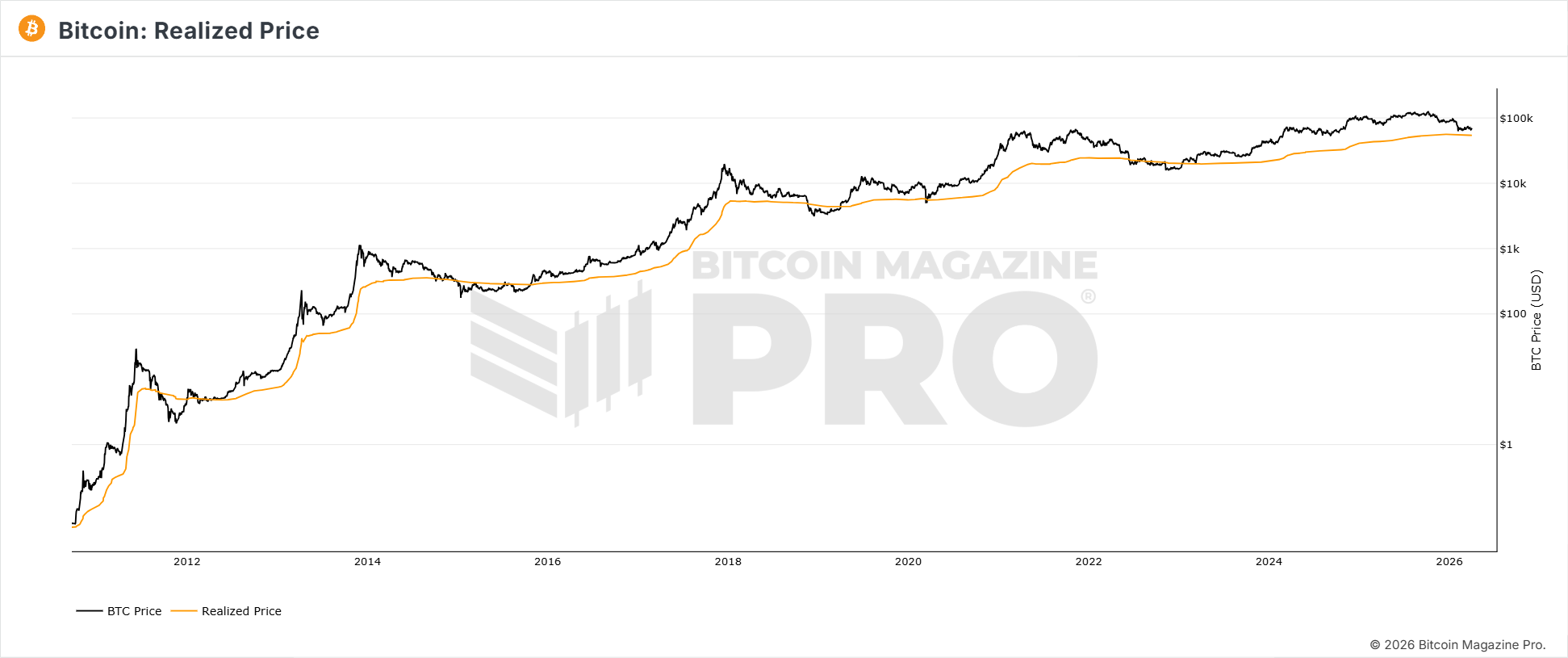 - Le Bitcoin Realized Price, le prix moyen d'achat les détenteurs de BTC et qui se situe actuellement autour des 54 000 $