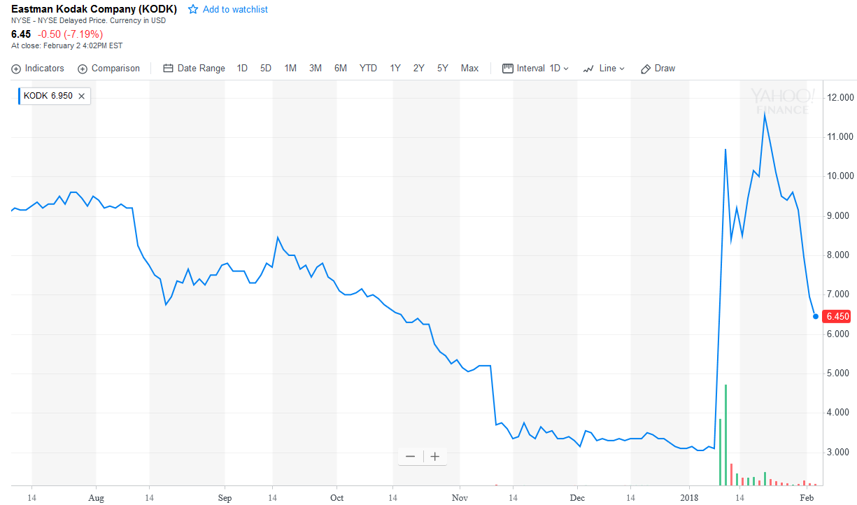 L’annonce du KodakCoin et la flambée de l’action Kodak