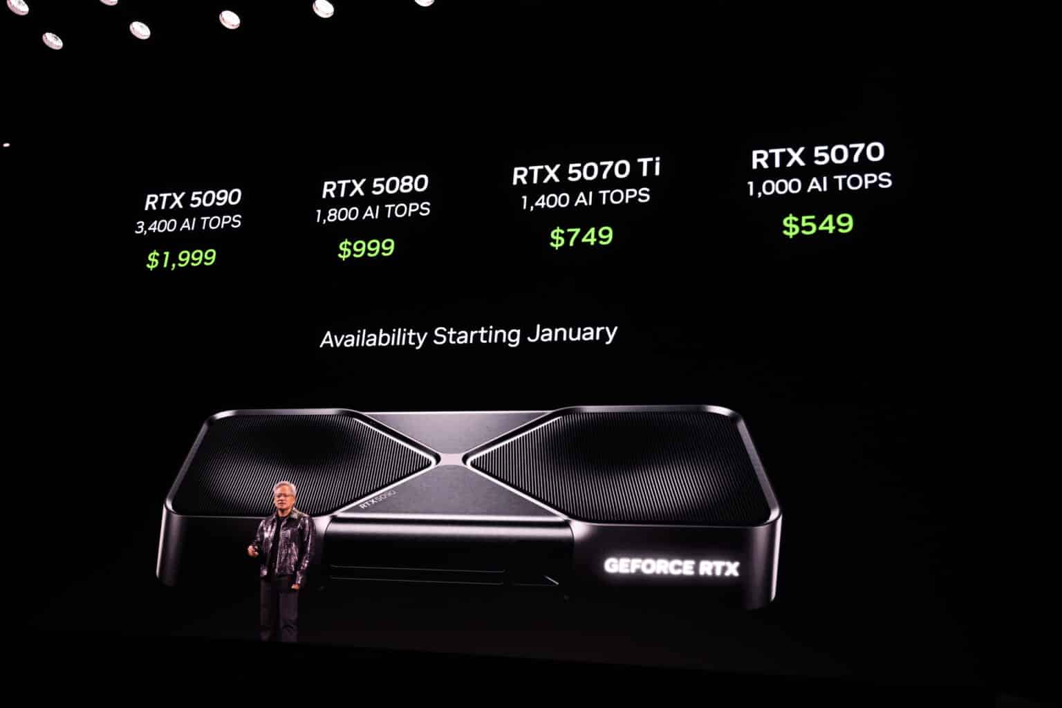 Jensen Huang dévoilant sa nouvelle série GeForce RTX 50 lors du CES 2025
