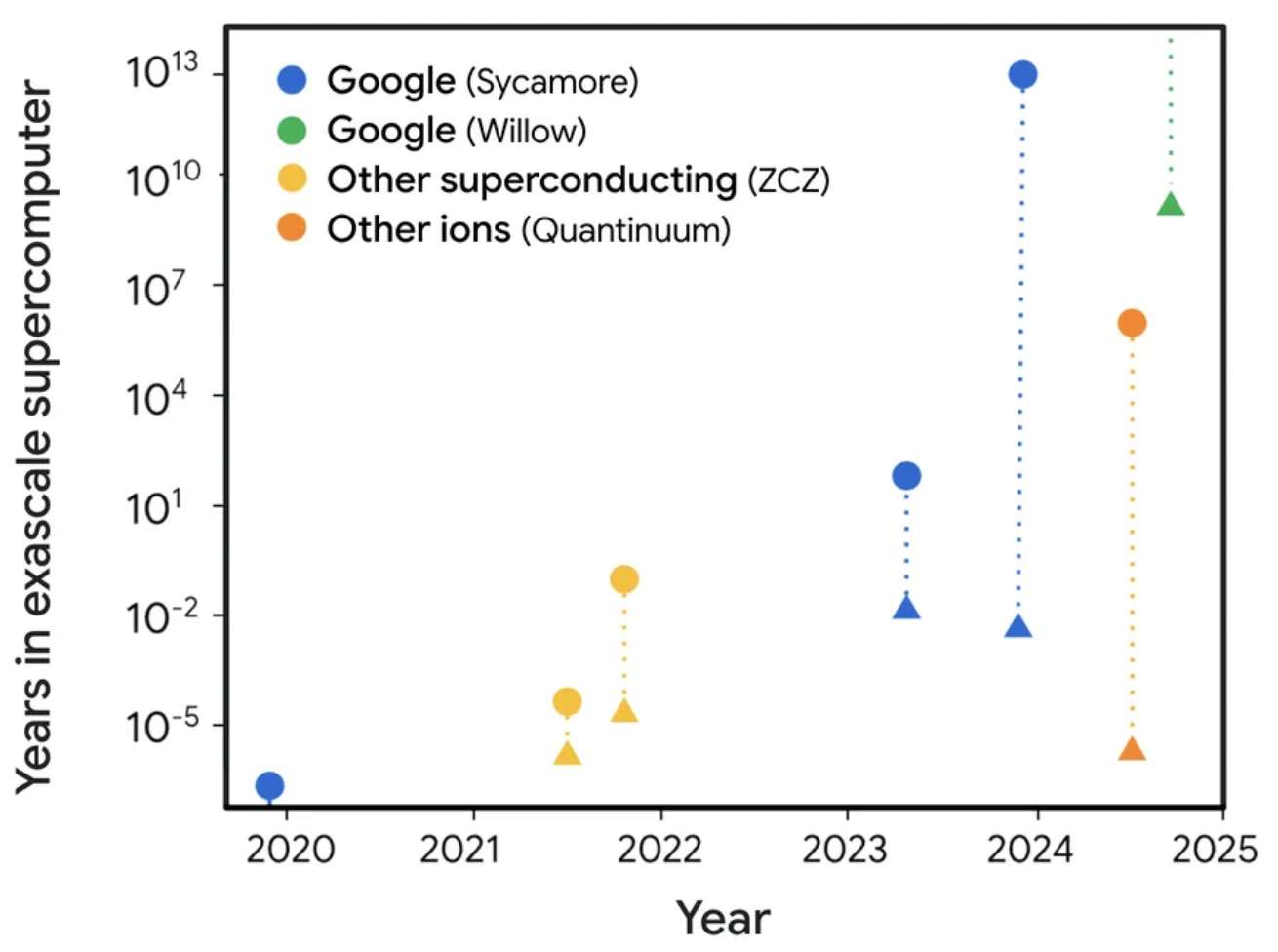 Pour obtenir un seul qubit logique fiable, il est nécessaire d’en utiliser plusieurs milliers de physiques avec des techniques de correction d’erreurs quantiques. Ainsi, pour exécuter l’algorithme de Shor sur une clé de 256 bits (comme celles utilisées dans l’ECDSA), on estime qu’il faudrait au total entre 20 et 30 millions de qubits physiques dans une machine bien optimisée, bien au-delà des 105 qubits proposés par le nouveau processeur quantique Willow de Google.