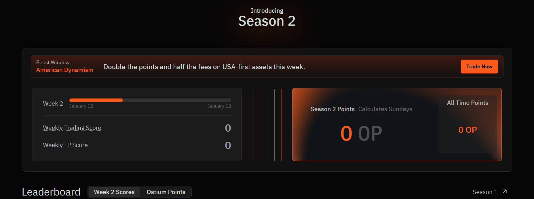 Avec le lancement de la saison 2 du programme de points d'Ostium, tous les compteurs ont été remis à zéro, offrant une nouvelle opportunité aux utilisateurs, y compris à ceux qui n'ont pas participé à la première saison. Cette deuxième phase introduit également de nouveaux mécanismes de récompense, destinés à favoriser une activité plus qualitative et plus diversifiée.