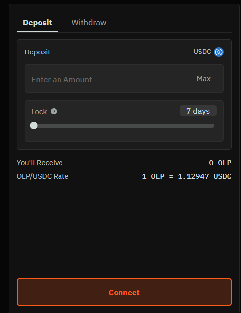 Le dépôt s'effectue en USDC, qui serviront ensuite de collatéral pour les positions de trading ou de capital pour les vaults.