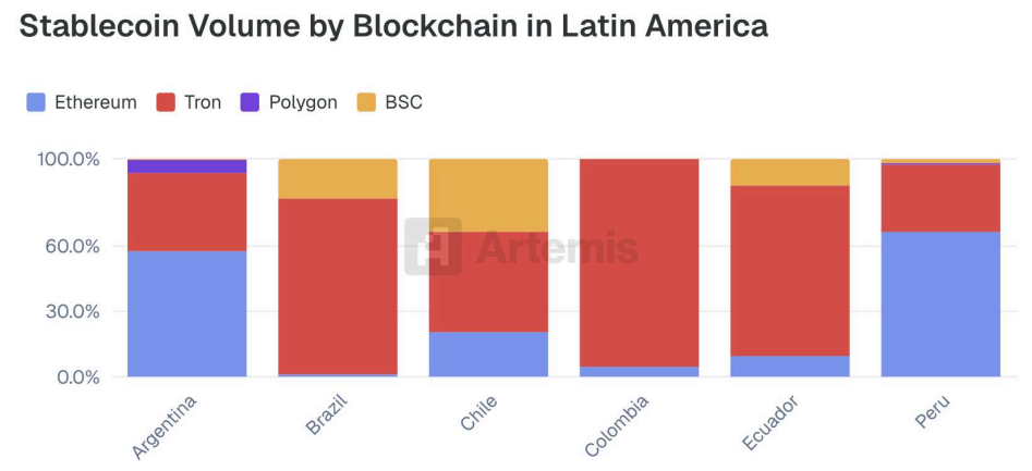 Graphique représentant les volumes de stablecoins par blockchain pour les pays d'Amérique latine