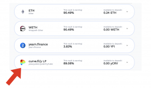 Pour ce faire, rendez-vous sur l’onglet Deposit de Curve.fi. Vous pourrez y swap vos tokens contre ce précieux yCRV, qui génère des CRV une fois stake, et qui rapporte actuellement autour de 90% d’intérêts annuels. Encore une fois, attention aux frais de transaction.