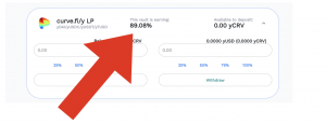 Sélectionner le vault en fonction des tokens que vous souhaitez déposer. Ici, dans le podcast, nous parlons du stable coin CRV, à près de 90% d’APR. Attention, ces APR sont calculées depuis la création du vault. Il est possible qu’au moment où vous déposiez vos fonds, les intérêts soient un peu différents, à la hausse ou à la baisse.