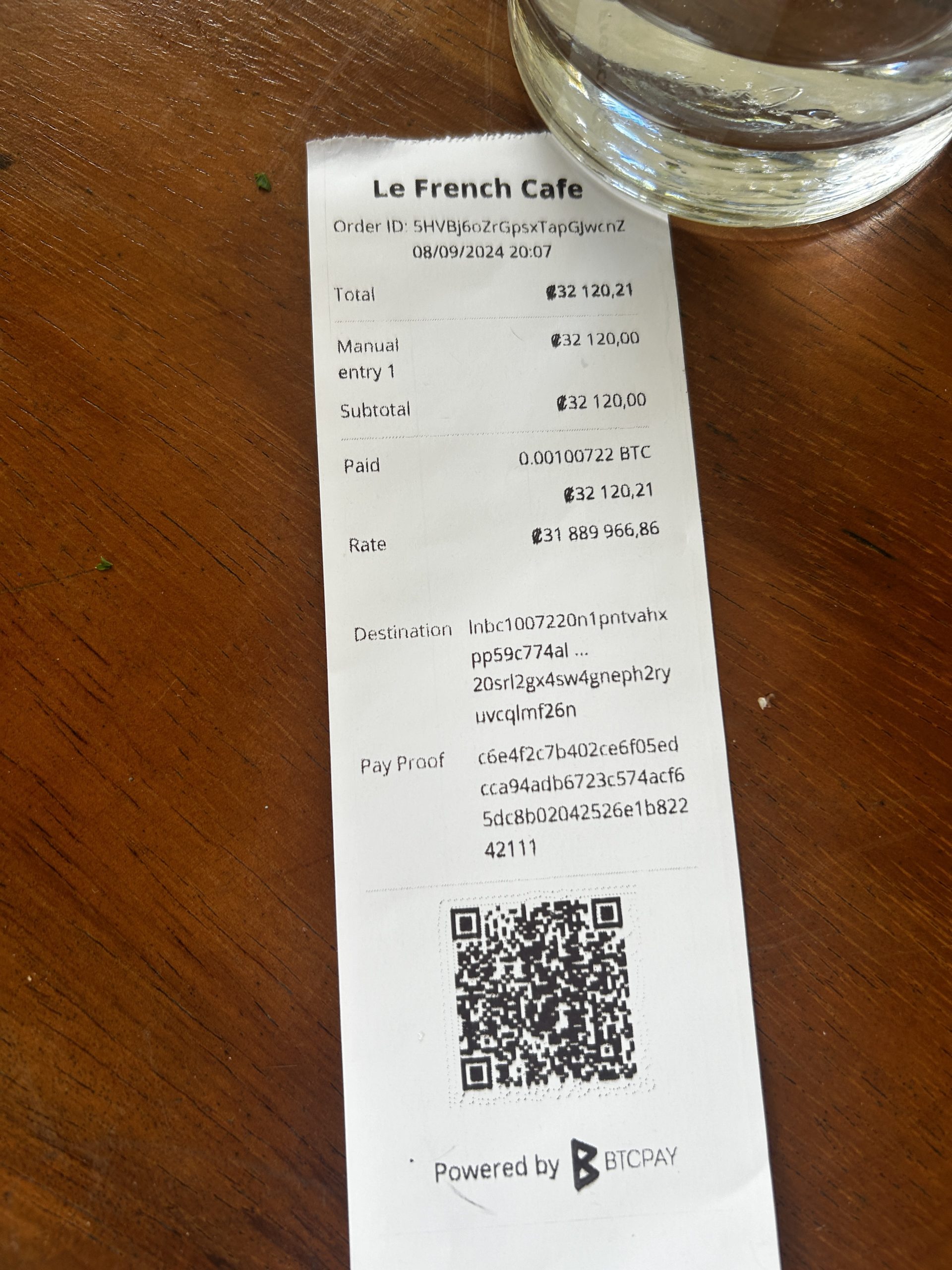 Facture en Bitcoin via le terminal de paiement fourni par Bitcoin Jungle au « French Café »