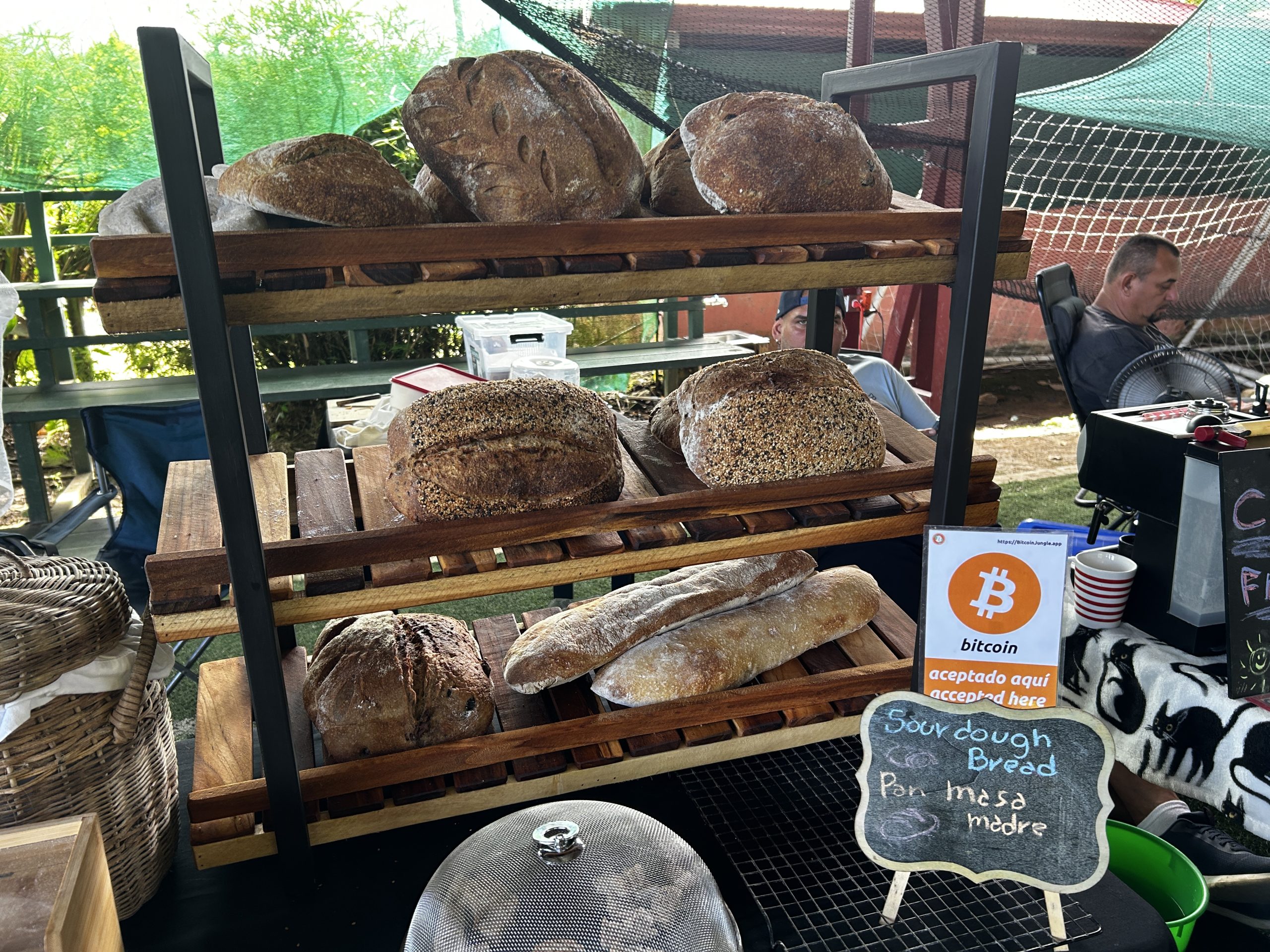 Commerçant acceptant le Bitcoin comme moyen de paiement au « mercado Bahía Ballena »