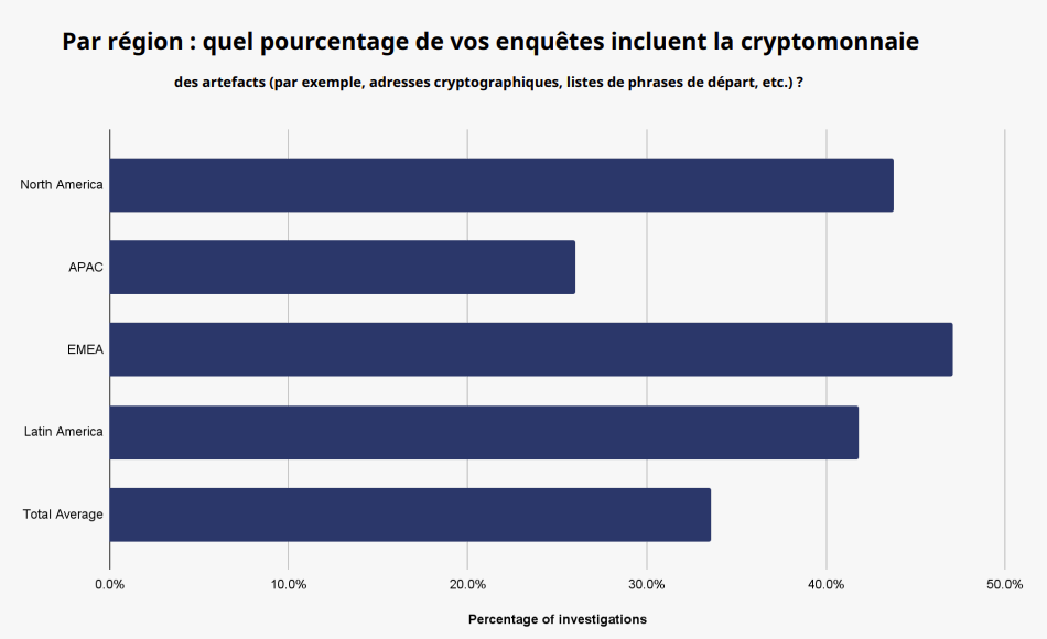 Figure 4 - Part des enquêtes incluant des cryptomonnaies dans les différentes régions du monde