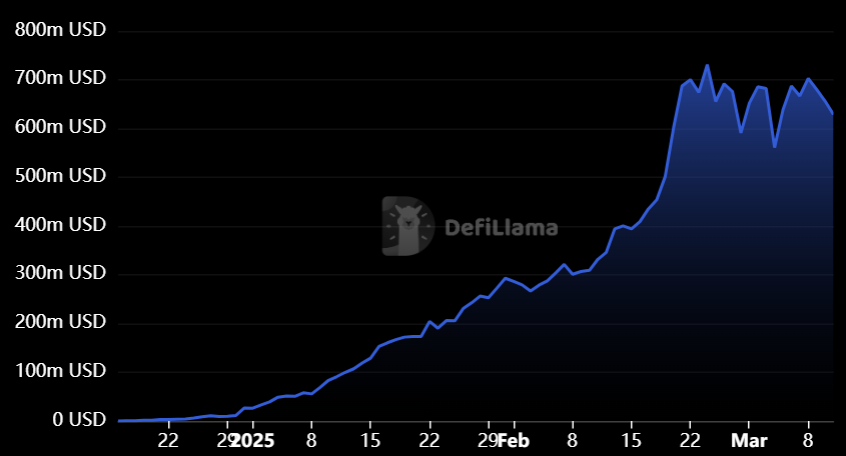 La valeur totale verrouillée (TVL) de Sonic a doublé en seulement 1 mois selon les données de DeFiLlama. Comme en témoigne le graphique ci-dessous, elle est actuellement de 628,5 millions de dollars.