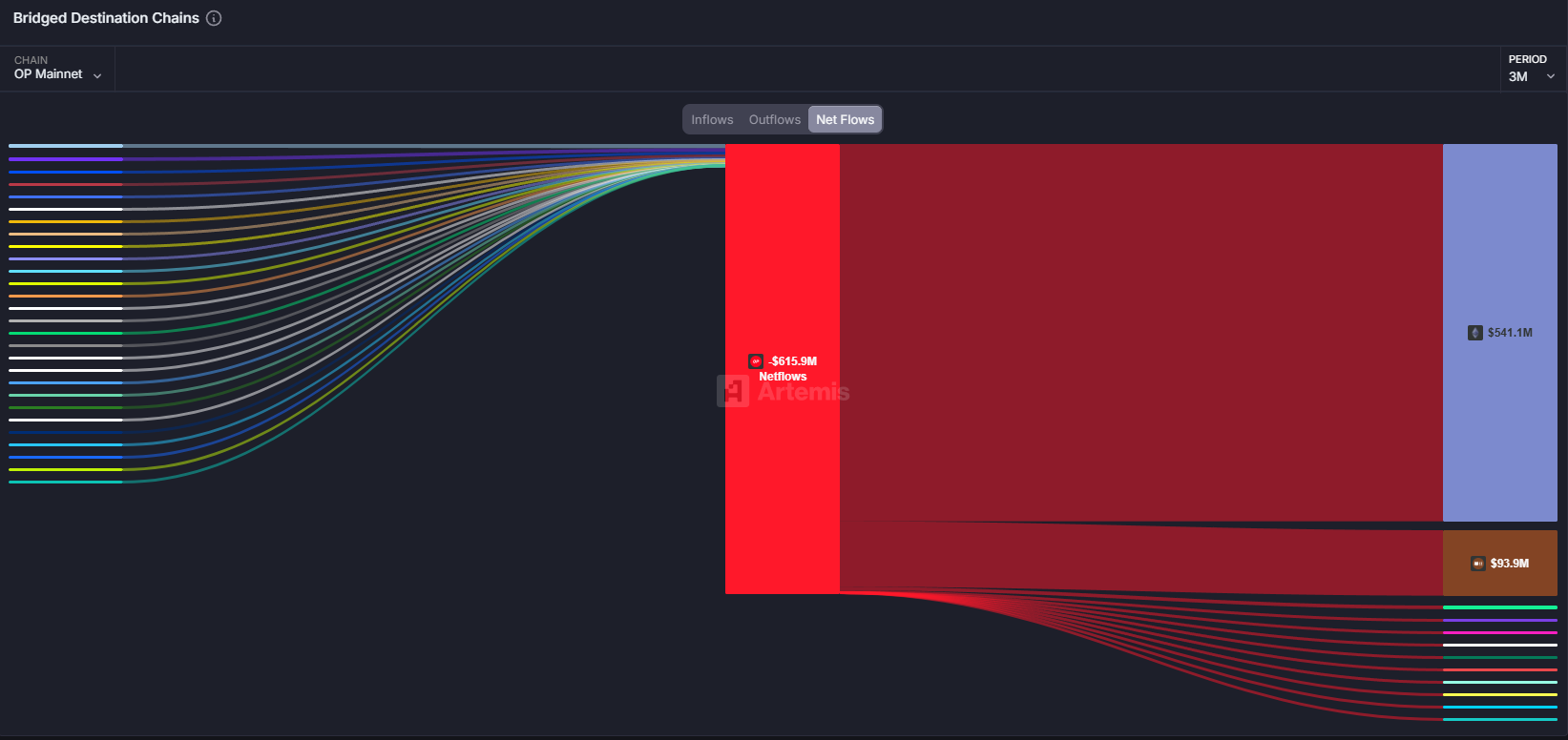 Comme nous pouvons le constater sur le graphique ci-dessous, la blockchain Optimism a laissé « s'échapper » près de 616 millions de dollars au cours des 3 derniers mois :