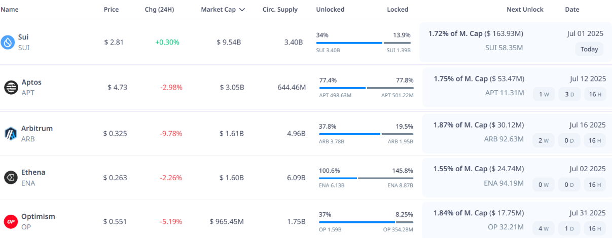 Quels sont les token unlocks à surveiller au mois de juillet 2025 ?