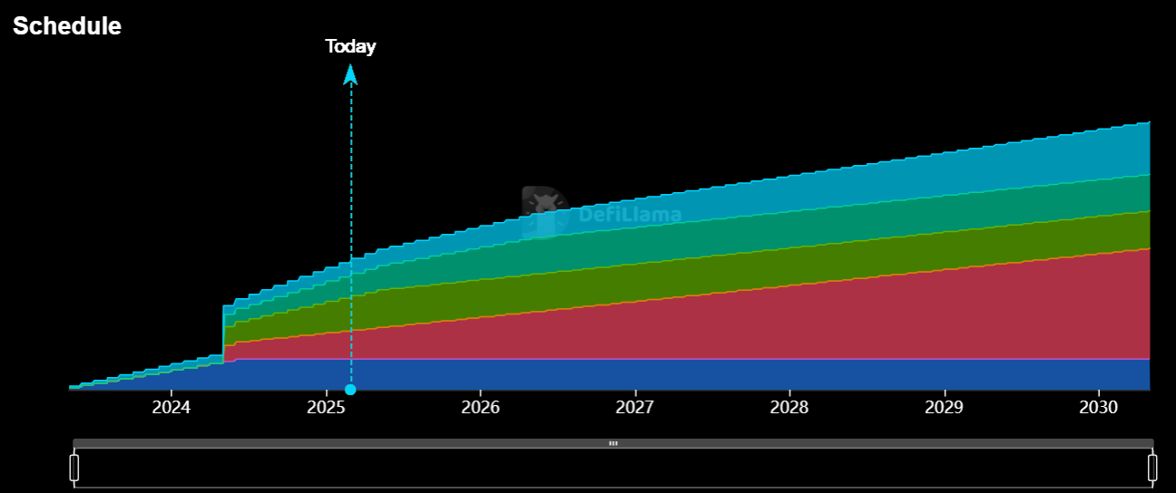 Il est important de savoir que les unlocks de Sui vont continuer à s'intensifier, et ce sur plusieurs années comme nous pouvons le constater sur le graphique ci-dessous :