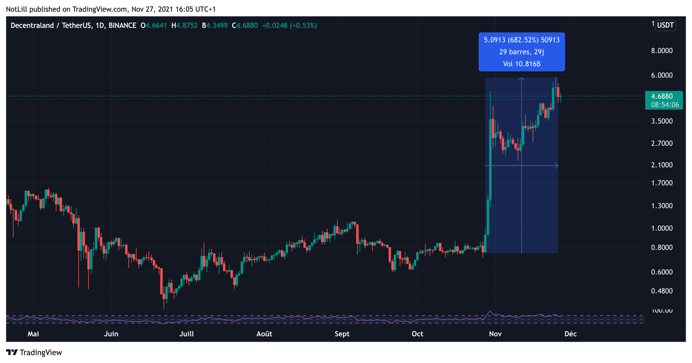 Hausse du prix du MANA depuis le 28 octobre 2021, annonce du renommage de Facebook - Source : TradingView