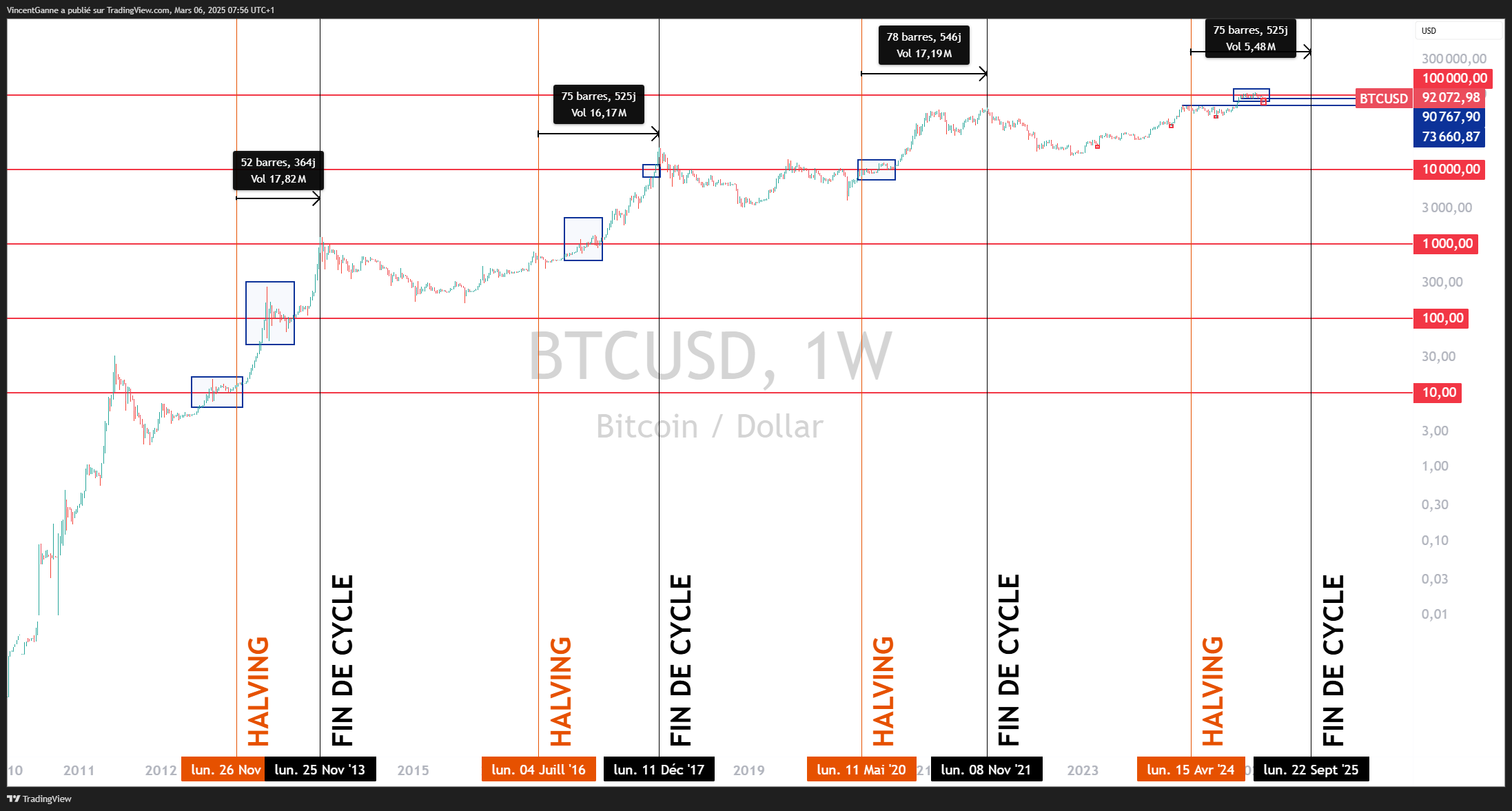 Comme chaque semaine, je tiens à vous rassurer sur le cycle haussier de Bitcoin qui est en cours, celui qui est lié au halving du 20 avril 2024.