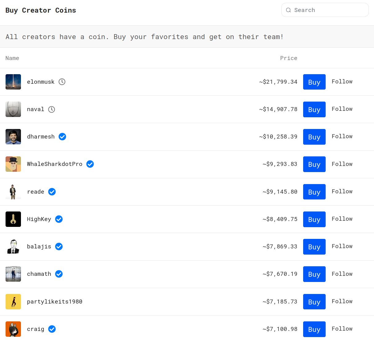 - « Social Tokens » : Chaque profil détient son propre token que tout le monde peut acheter ou vendre et dont le prix fluctue en fonction de l’offre et de la demande. Ces derniers sont de fait directement liés à l'activité d’un créateur sur la plateforme.