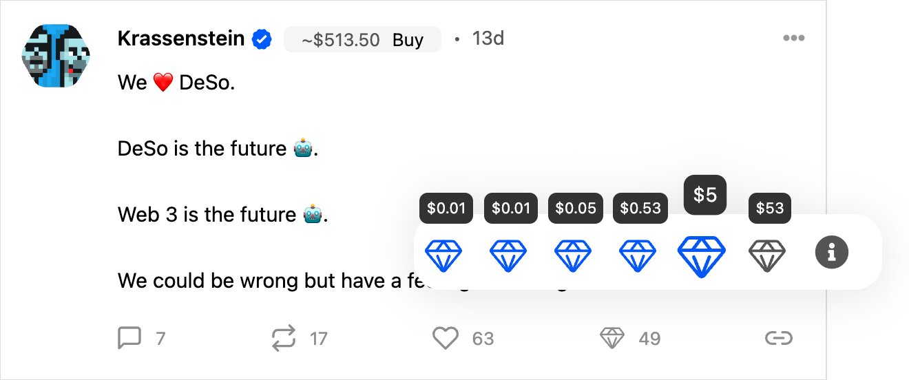 Outre les fonctions sociales traditionnelles, la blockchain DeSo apporte quelques nouveautés au niveau de l’expérience utilisateur :